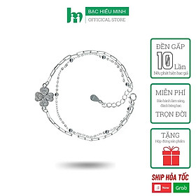 Lắc Tay Nữ Bạc Hiểu Minh LTU508 Cỏ 4 Lá Dây Kép Bi Xích