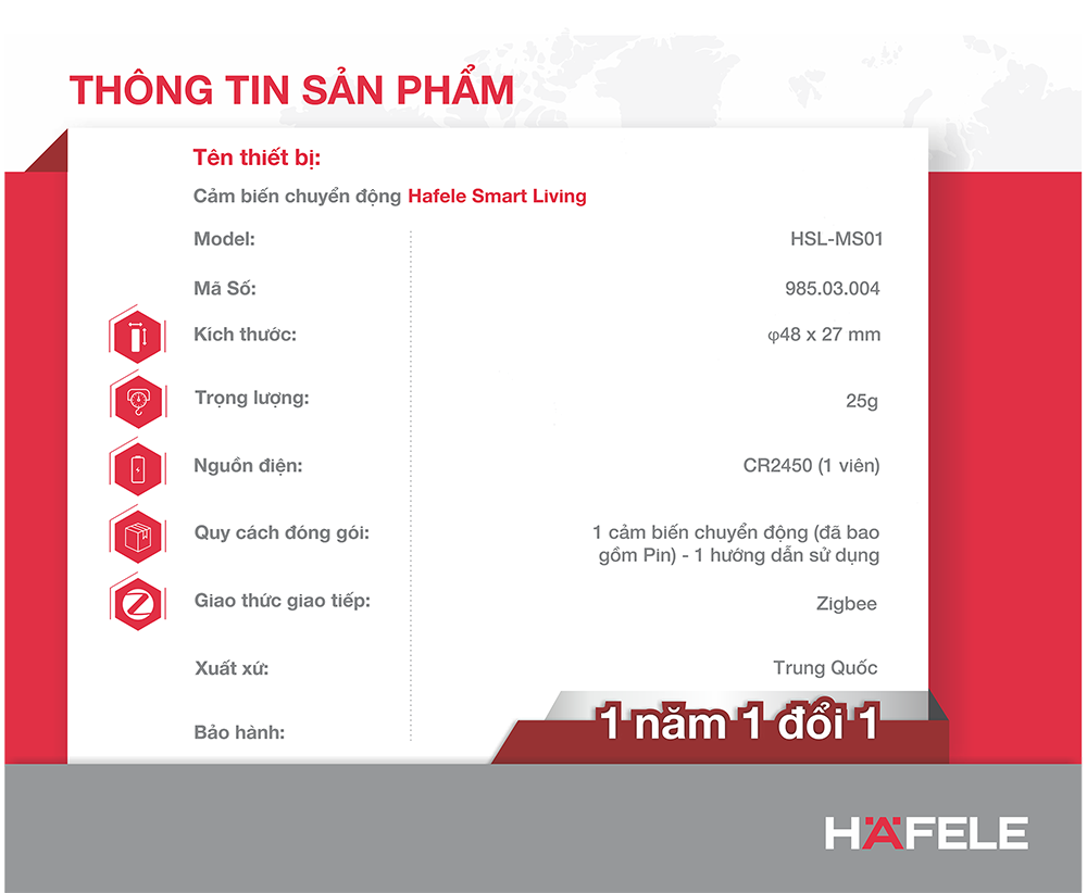 Cảm biến chuyển động Hafele Smart Living Hafele Motion sensor là thiết bị điện được trang bị một loại cảm biến đặc biệt nhằm phát hiện ra các chuyển động vật lý trên một thiết bị hoặc trong môi trường thật. Nhờ vào những lợi ích to lớn của cảm biến chuyển động đem lại mà nó đang được vận dụng ngày càng phổ biến trong đời sống hàng ngày của chúng ta.