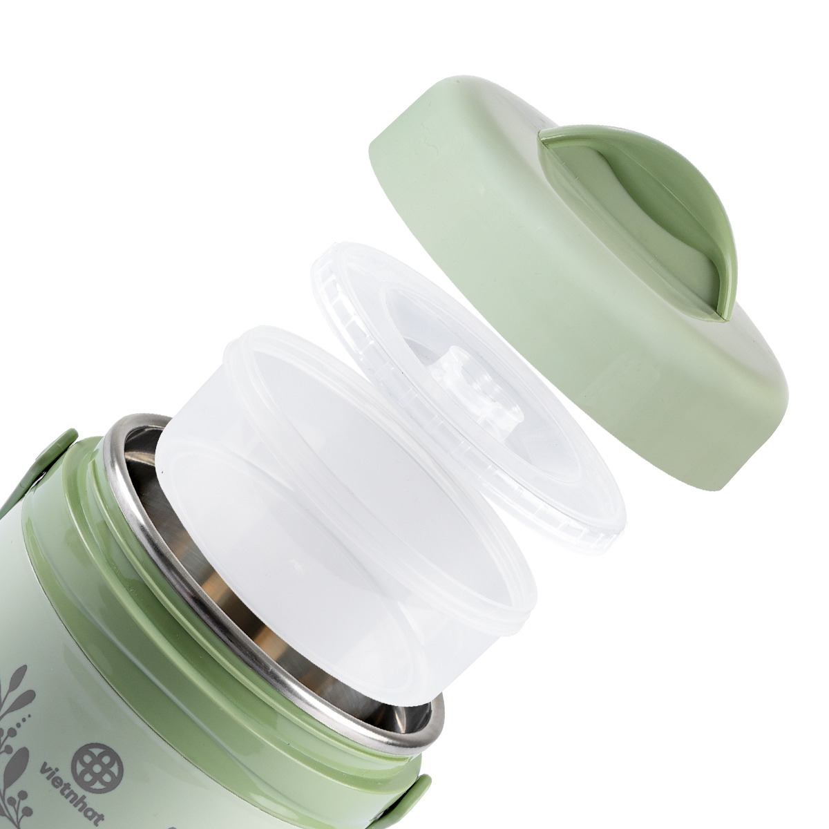 Thiết kế đơn giản nhưng tinh tế với vỏ bọc bên ngoài bằng nhựa PVE cao cấp, màu sắc tươi sáng, bên trong bằng inox cách nhiệt lí tưởng bằng chân không đảm bảo thức ăn luôn nóng sốt.