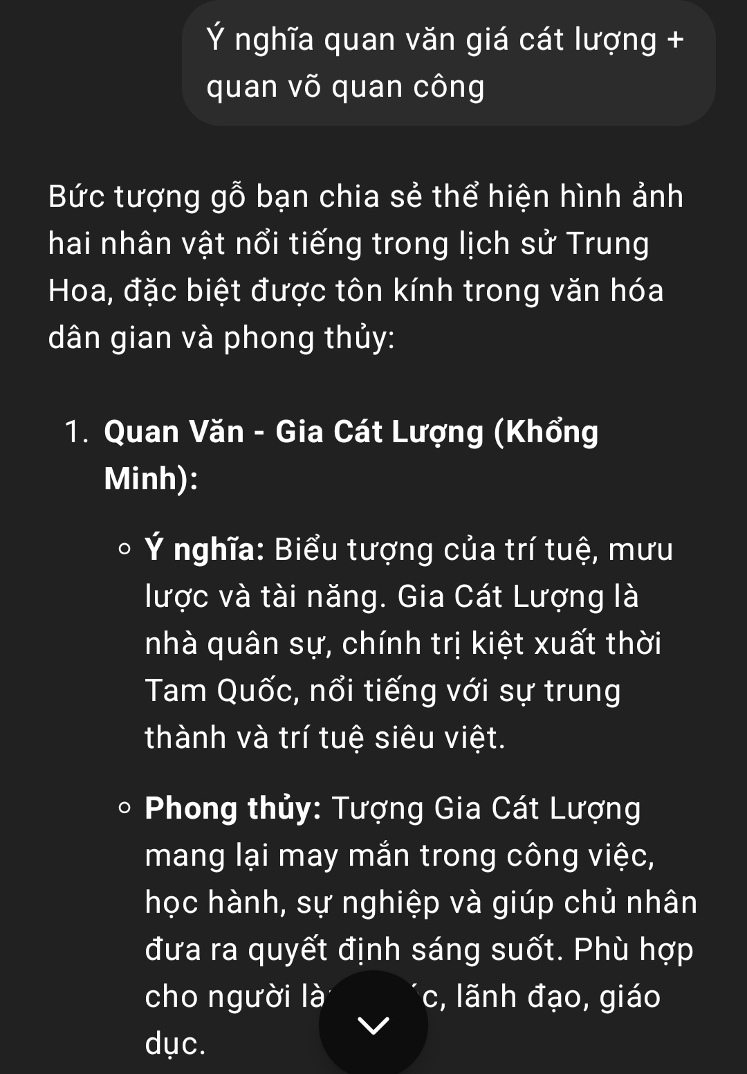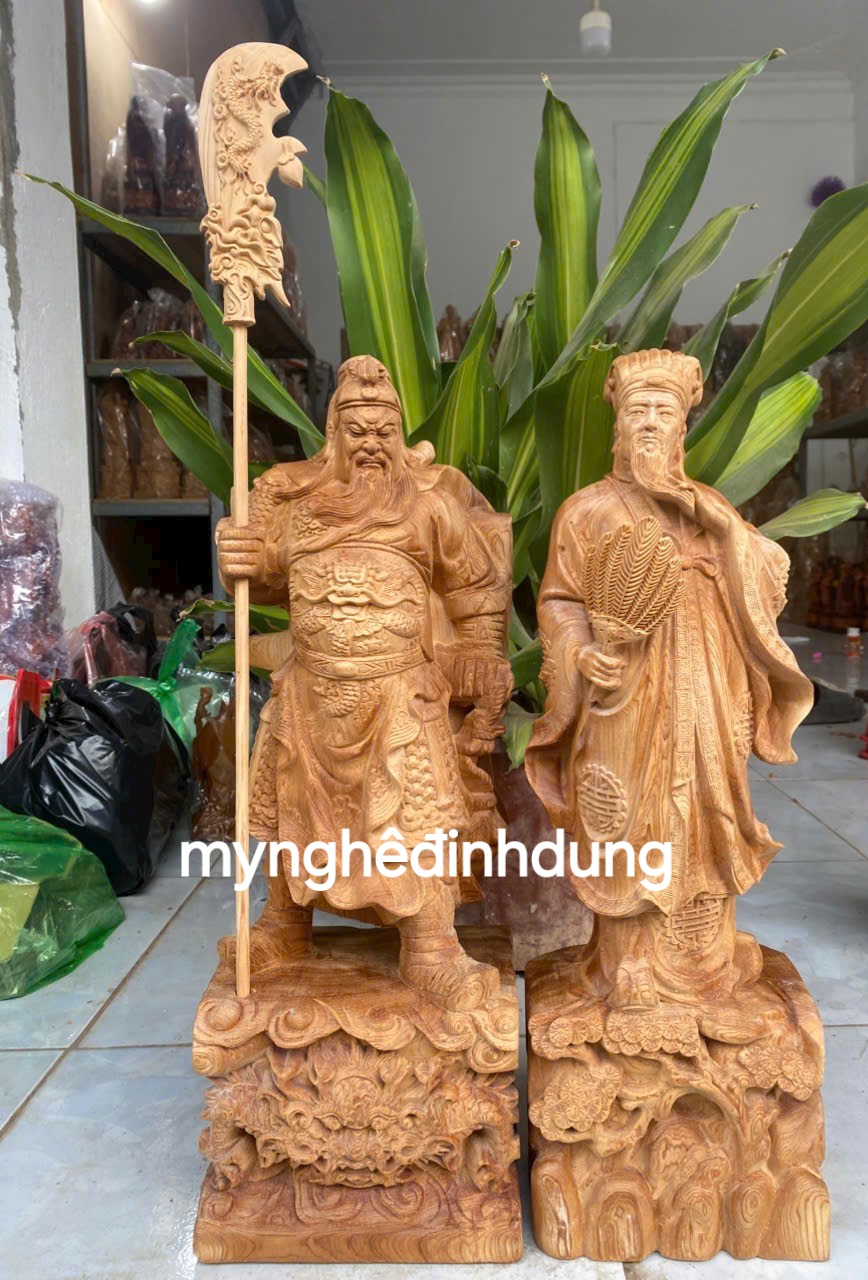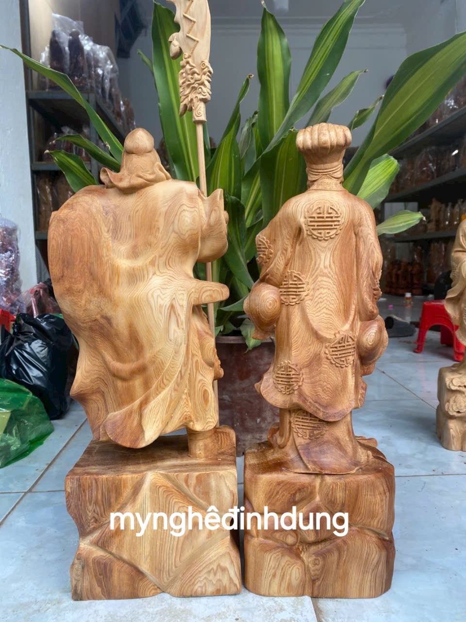 _ Cặp tượng quan văn khổng minh gia cát lượng + quan võ quan công được làm bằng chất liệu gỗ ngọc Am liền khối tự nhiên 100%