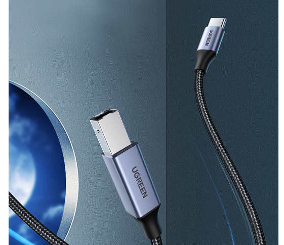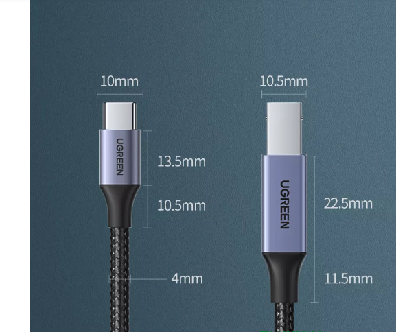 - Cáp chuyển đổi USB Type C sang USB-B Ugreen 80805 là phụ kiện cao cấp giúp bạn kết nối máy tính, laptop đời mới có tích hợp cổng usb chuẩn C với các thiết bị khác qua cổng USB-B như máy in, máy scan… và các thiết bị giải mã âm thanh DAC đời mới hiện nay.