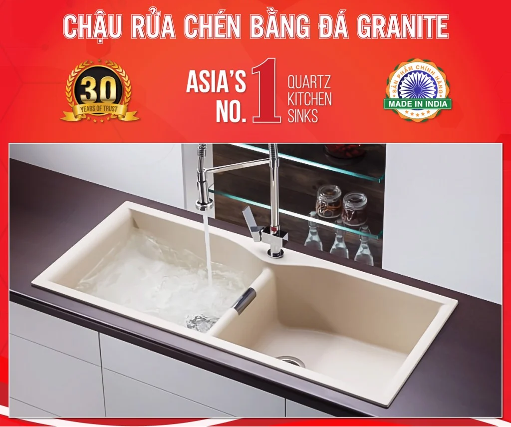 Chậu Rửa Chén Carysil LAC1 - 80% Bột Đá Granite Tự Nhiên - Hàng Chính Hãng