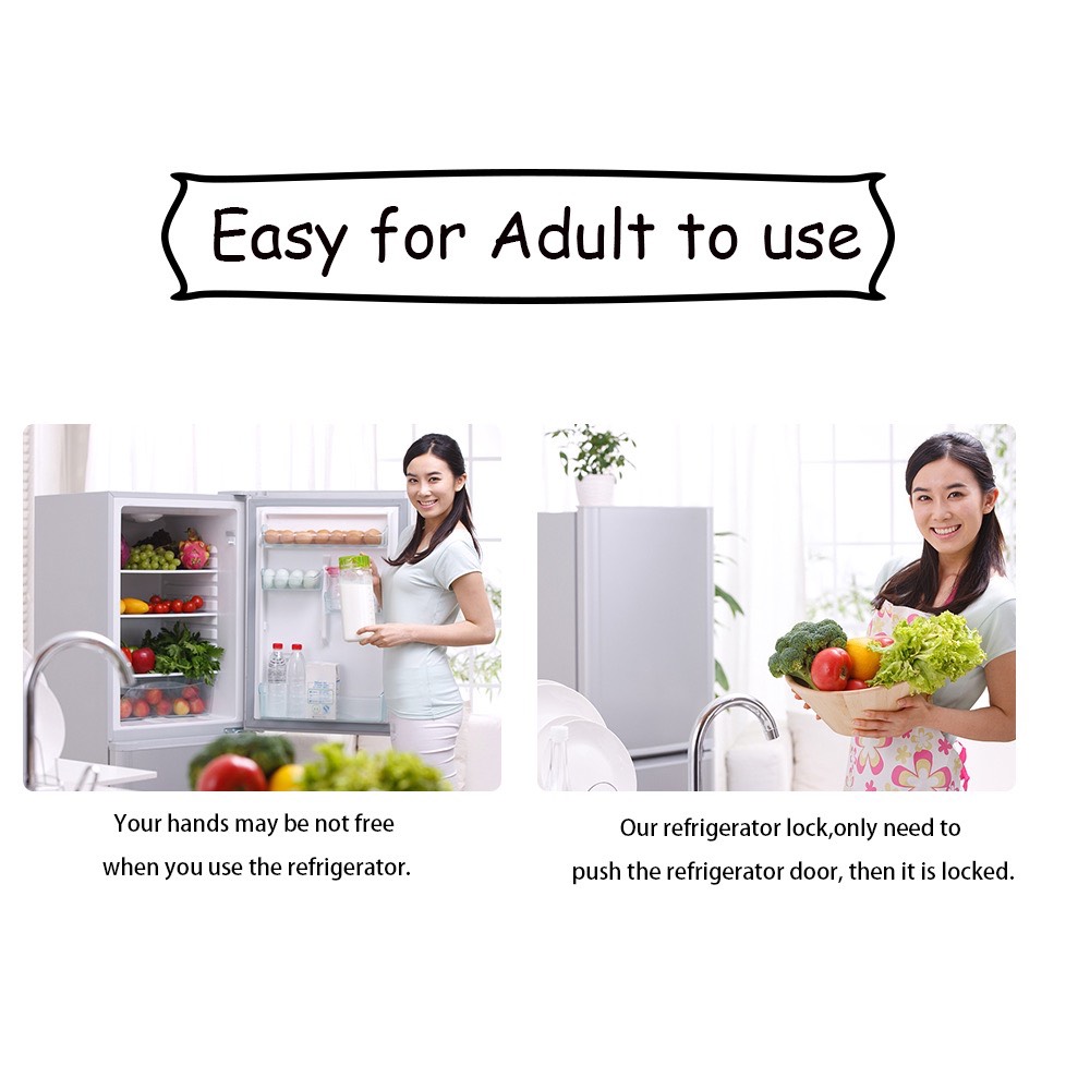 - Khóa tủ lạnh rất hữu dụng cho những gia đình có con nhỏ đang trong tuổi khám phá, bố mẹ sẽ hết phiền não, lo lắng khi cánh cửa tủ lạnh, tủ, ngăn ké liên tục bị bé mở ra.