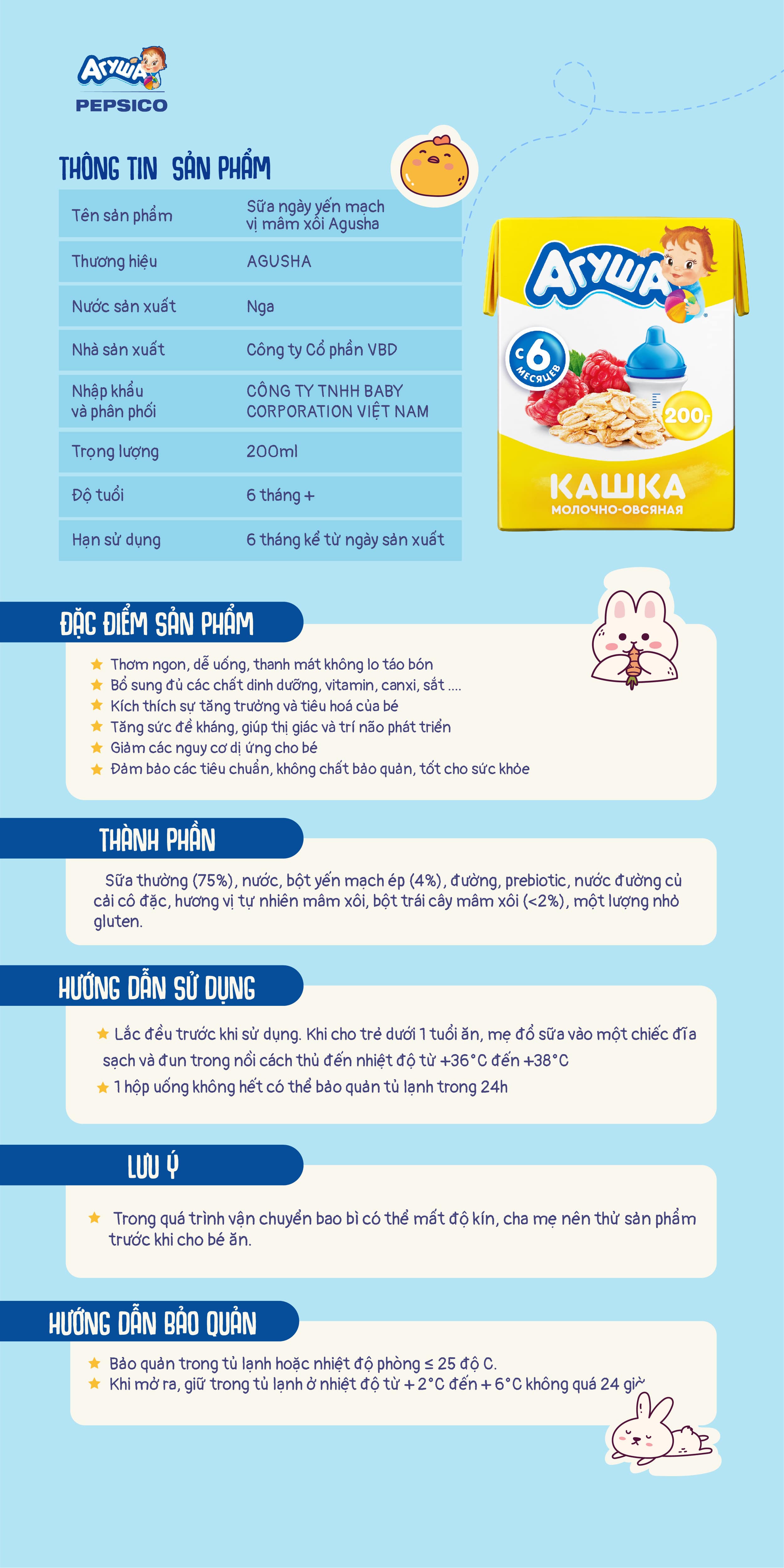 Combo 10 hộp Sữa ngày yến mạch vị mâm xôi Agusha 200ml/hộp