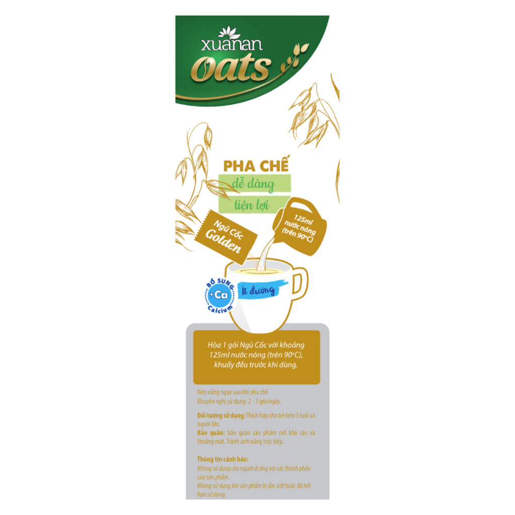 Hướng dẫn sử dụng: Hòa 1 gói Ngũ cốc với khoảng 125ml nước sôi, khuấy đều trước khi dùng. Dùng 2-3 gói mỗi ngày