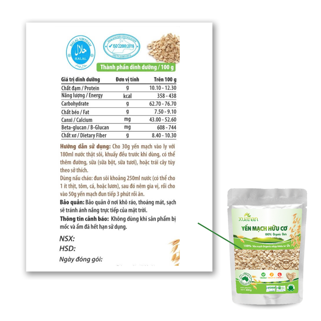 Combo 11 Túi Yến Mạch Hữu Cơ Xuân An [ko đường] Túi 400G(Tặng Kèm 11 Túi Yến Mạch 150G)