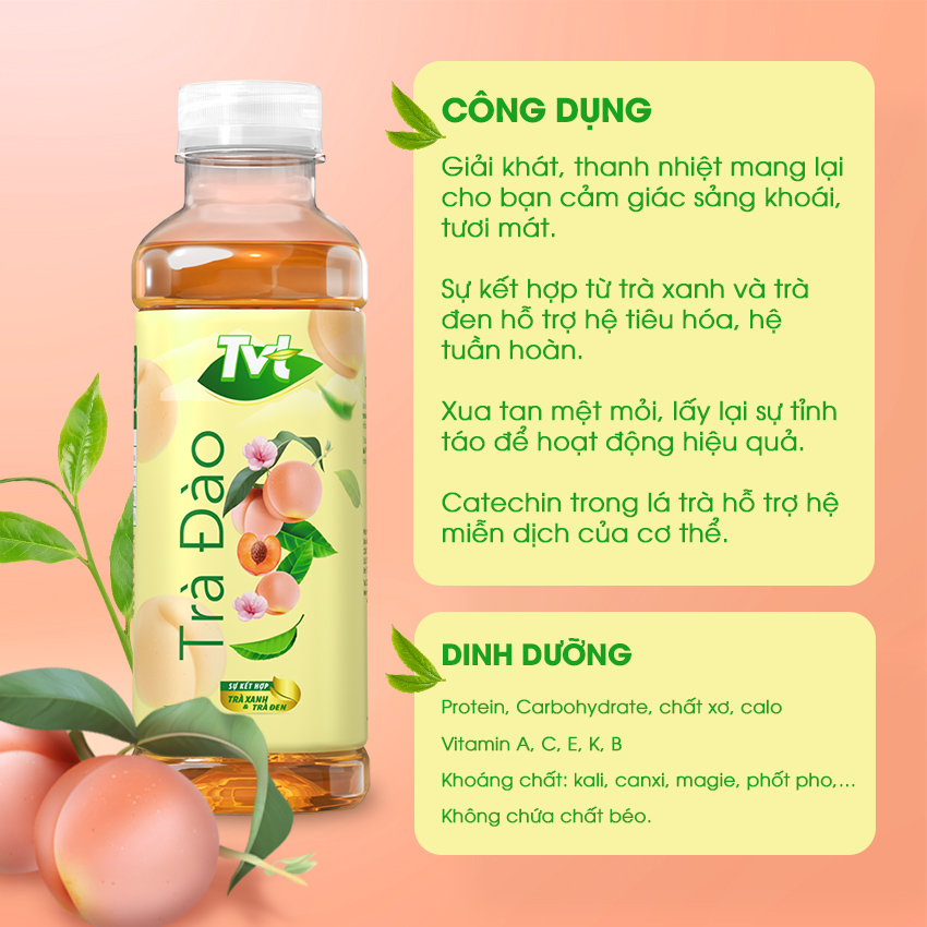 [Combo 12 chai 450ml] TVT trà Đào trà tắc mật ong tinh chất trà xanh, trà đen, chống oxy hóa, thanh nhiệt giải phóng độc tố cơ thể