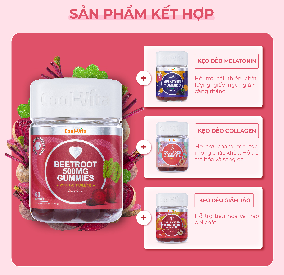 Hỗ trợ dễ dàng bổ sung dinh dưỡng: Kẹo Dẻo Củ Dền CoolVita hỗ trợ bổ sung các dưỡng chất thiết yếu mỗi ngày mà không cần phải lo lắng về khẩu vị hay việc chuẩn bị phức tạp.
