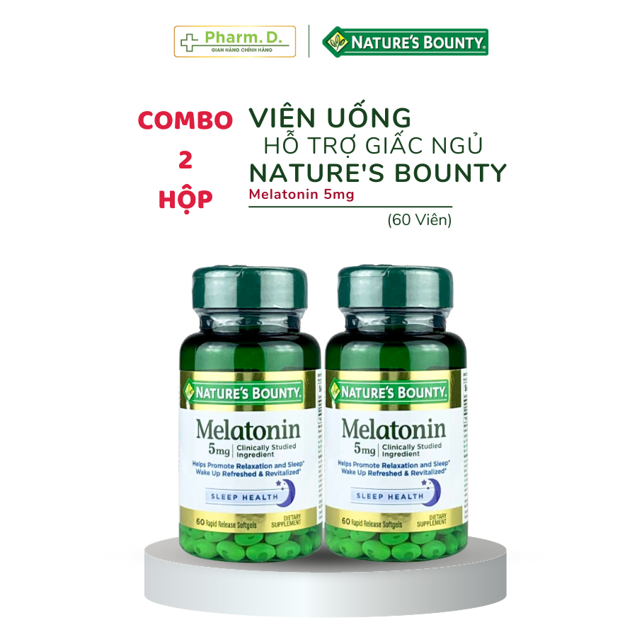 Combo 2 Hộp Viên Uống Hỗ Trợ Điều Hòa Giấc Ngủ NATURE'S BOUNTY Melatonin 5mg (60 Viên)