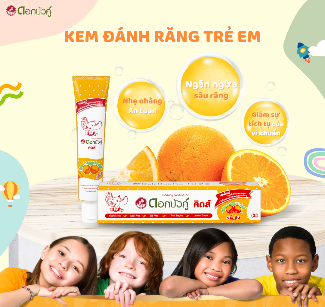 [COMBO 6 HỘP] KEM ĐÁNH RĂNG THẢO DƯỢC DỊU NHẸ - AN TOÀN CHO BÉ DOKBUAKU KIDS HƯƠNG CAM