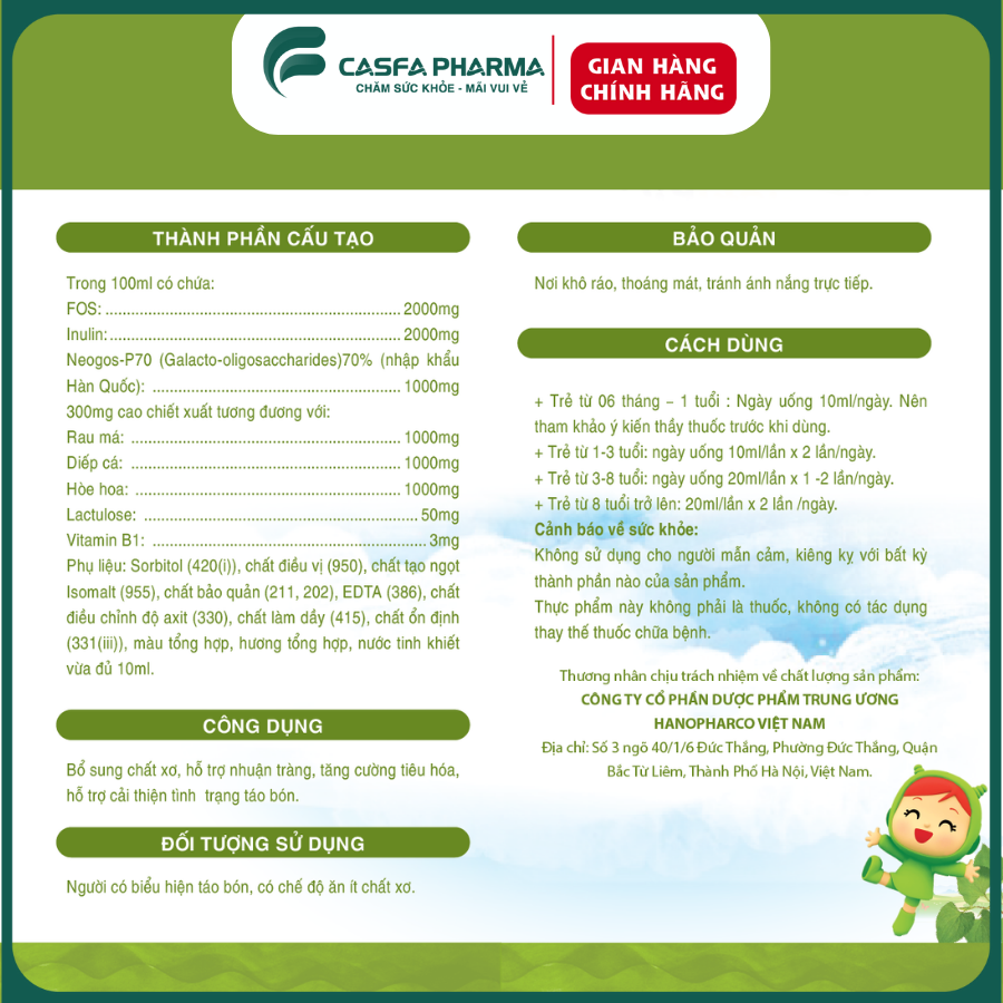 - Cung cấp vitamin và dưỡng chất cần thiết Giúp cung cấp chất xơ tự nhiên inulin cho trẻ nhỏ, Giúp nuôi dưỡng và phát triển hệ vi khuẩn có ích, Giúp tăng nhu động ruột, tăng p.hân h.uỷ các chất cặn bã, thông đại tiện, khắc phục hiệu quả tình trạng táo bón, trướng bụng, đầy hơi. Ngừa táo bón ở trẻ em, bé không còn chướng bụng, đầy hơi, biếng ăn