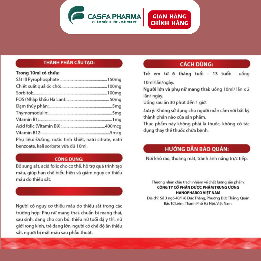 - Hỗ trợ điều trị bệnh thiếu máu do thiếu sắt: như xuất huyết mạn hoặc tiềm ẩn, sau cắt dạ dày, hội chứng suy dinh dưỡng và mang thai