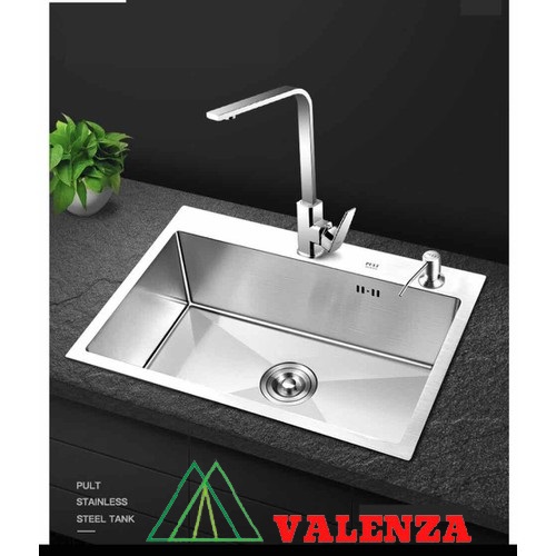 TRỌN BỘ COMBO GỒM 1 CHẬU RỬA BÁT 1 HỐ SUS304 VALENZA 6045, 1 BỘ XẢ XIPHONG CHẬU, 1 BỘ VÒI RỬA BÁT INOX VUÔNG DẸT NÓNG LẠNH, RÁ INOX ĐA NĂNG CO GIÃN, BÌNH XÀ PHÒNG CẮM CHẬU, ĐÔI DÂY CẤP VÒI RỬA BÁT