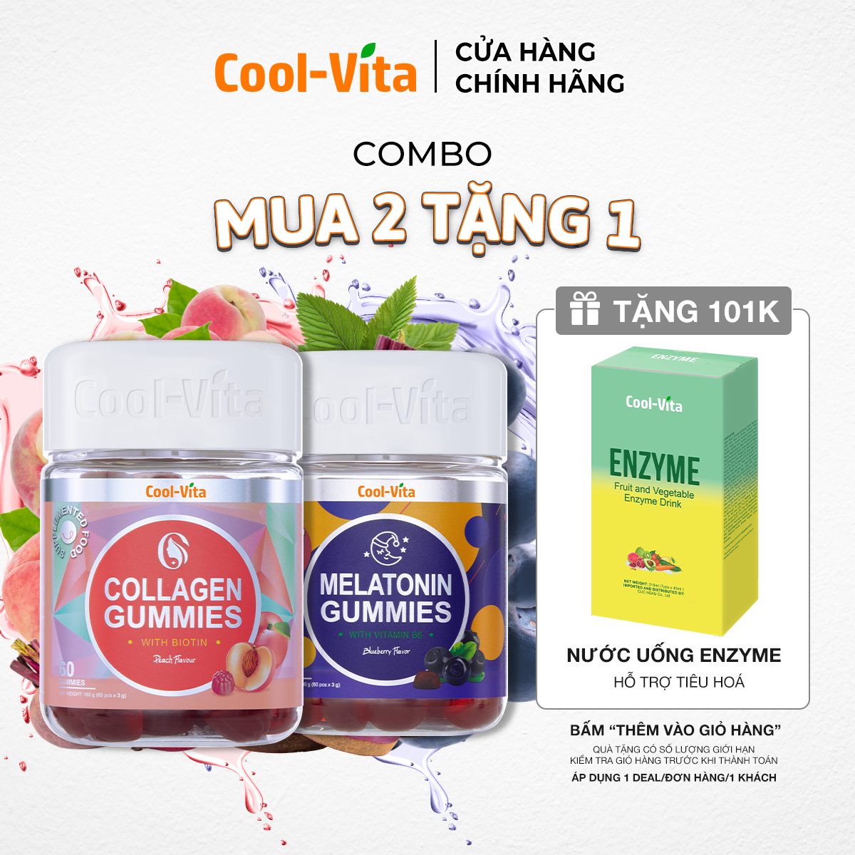 Combo Kẹo Dẻo Collagen & Kẹo Dẻo Melatonin Coolvita Hỗ Trợ Trẻ Hóa Da, Hỗ Trợ Cải Thiện Sức Khỏe Tóc Móng, Hỗ Trợ Cải Thiện Giấc Ngủ Và Hỗ Trợ Giảm Căng Thẳng - 2 Hộp (60 viên x 3g)/hộp
