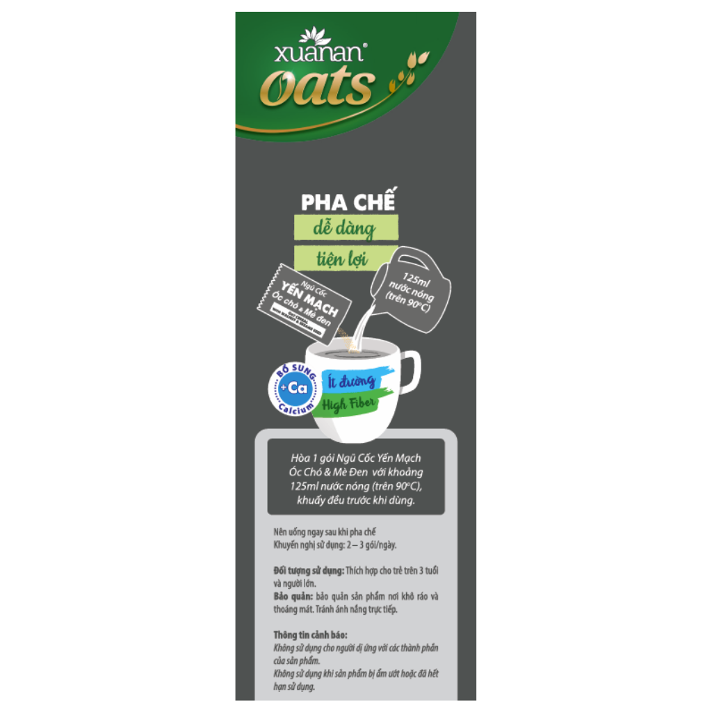 Hướng dẫn sử dụng: Hòa 1 gói Ngũ cốc với khoảng 125ml nước sôi, khuấy đều trước khi dùng. Dùng 2-3 gói mỗi ngày