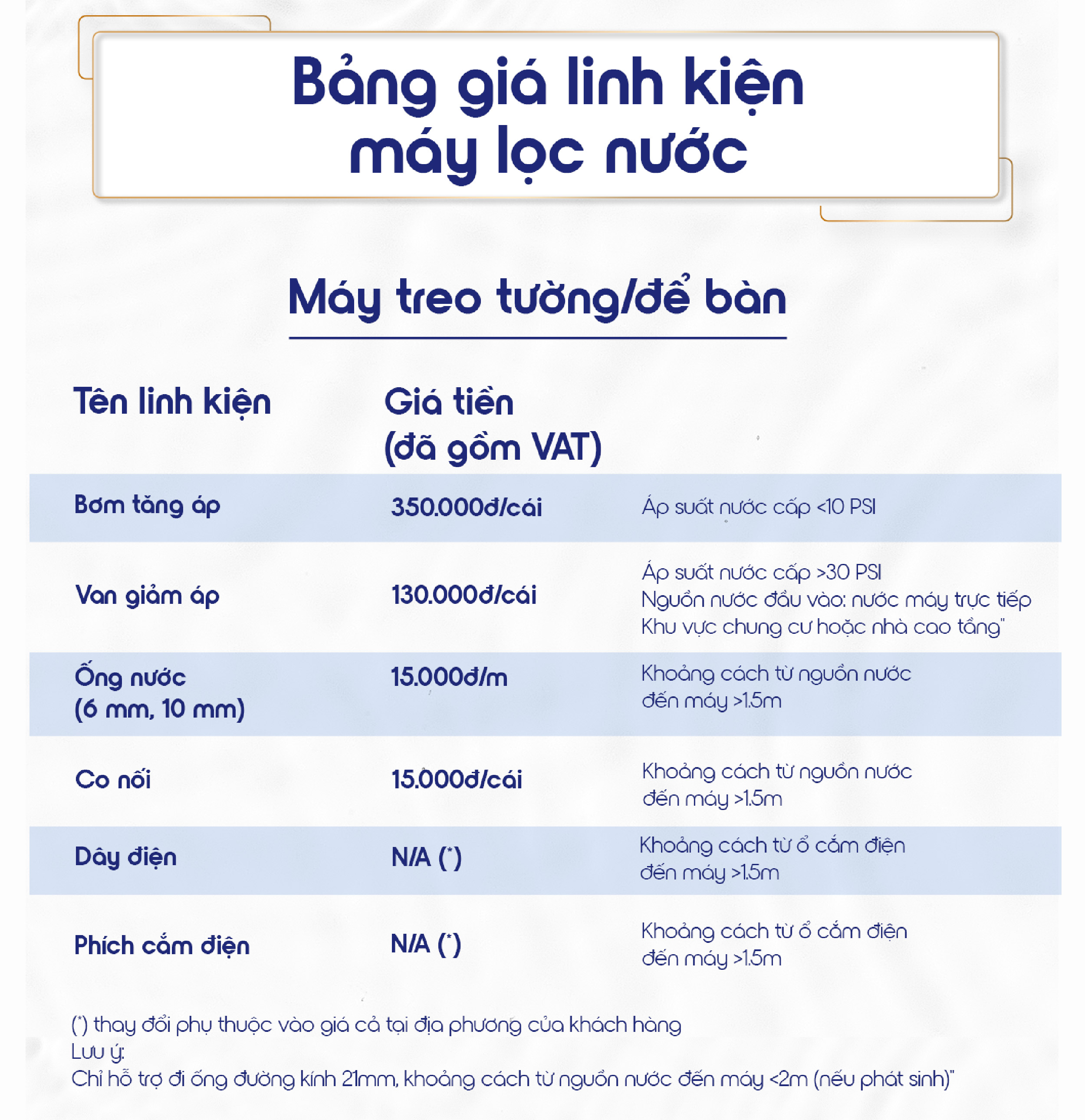 - Nước đầu vào yêu cầu là nước máy tiêu chuẩn.