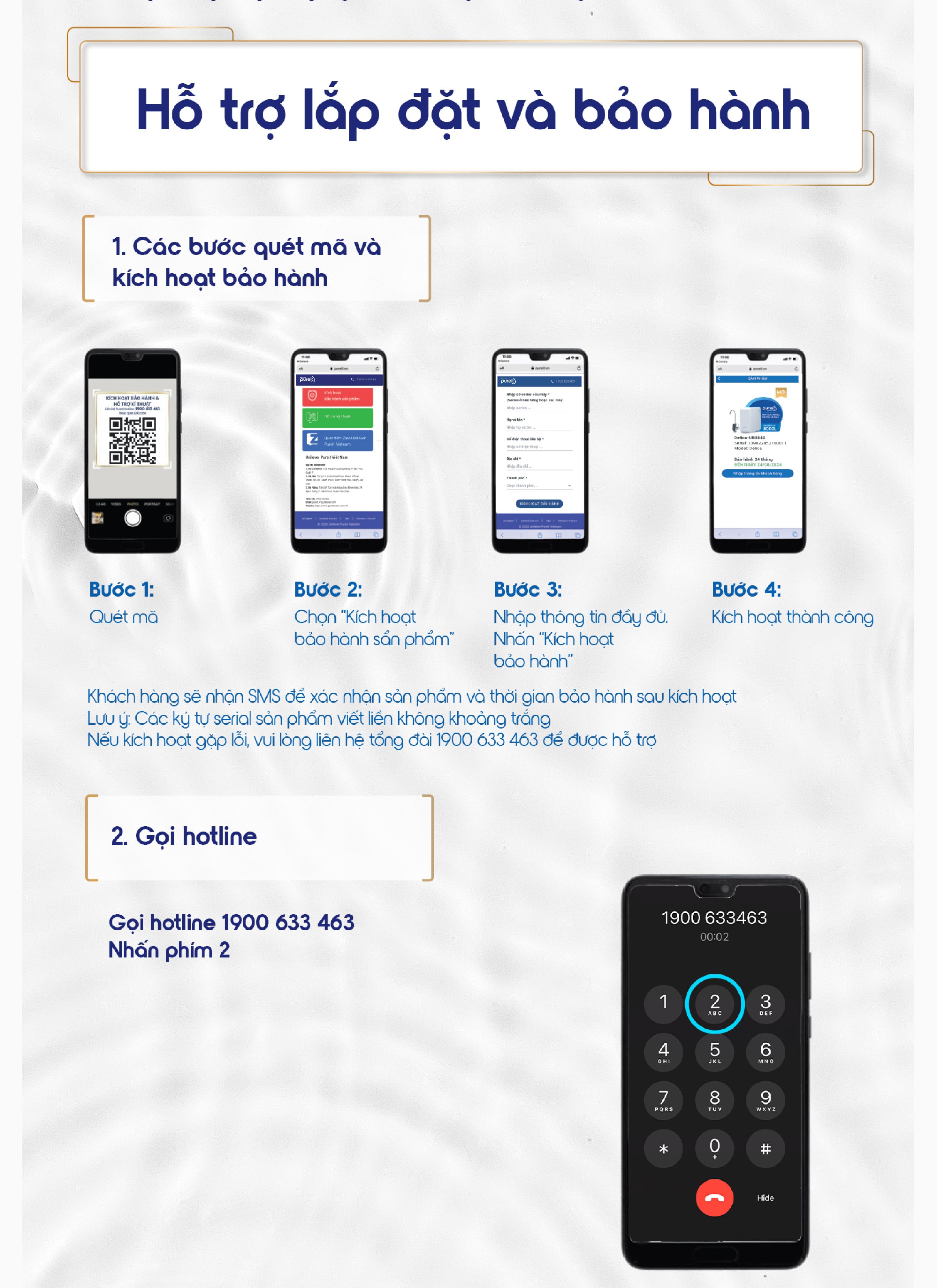 Thời gian bảo hành: 6 tháng kể từ thời điểm mua hàng (ngày trên hóa đơn) + Tặng thêm 6 tháng khi mua Combo Máy và Bộ lọc dự trữ (Liên hệ gian hàng để được hướng dẫn kích hoạt thêm)