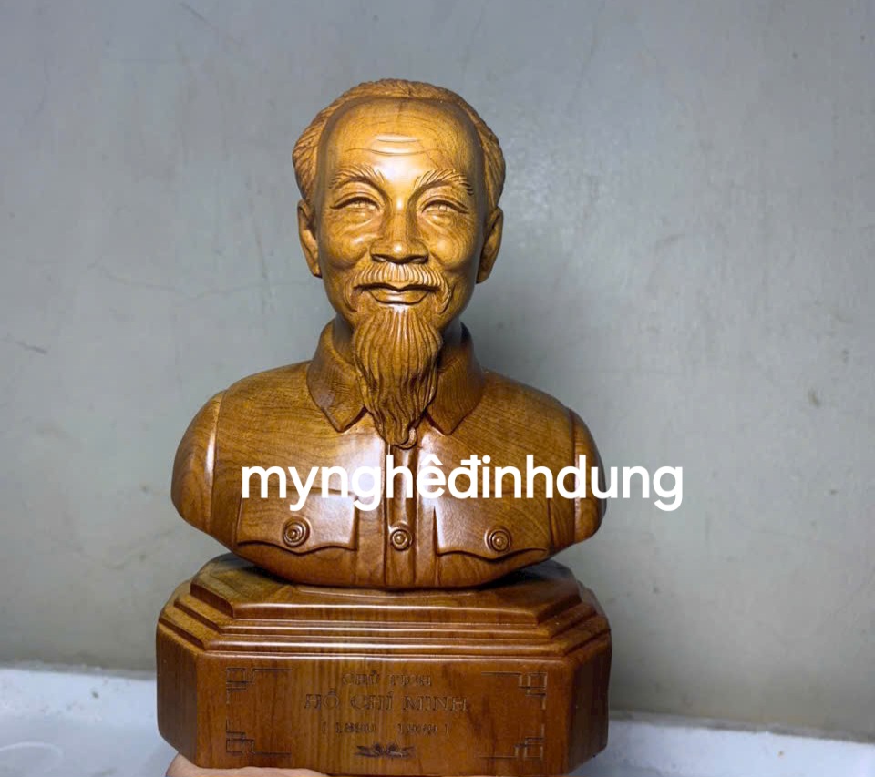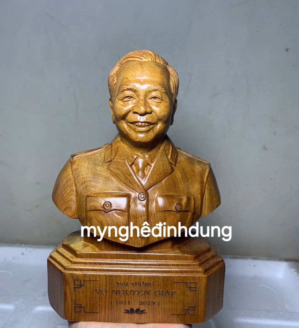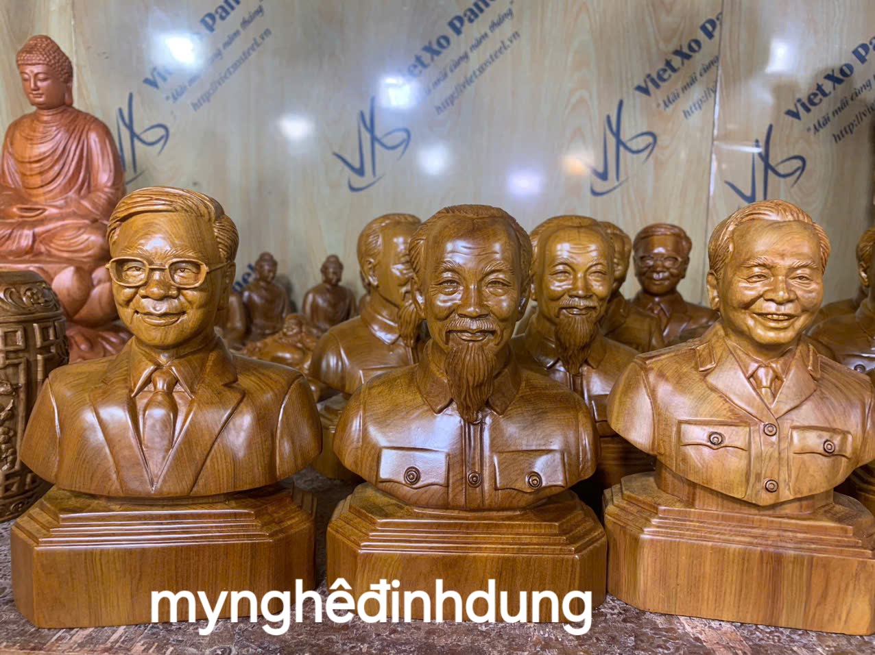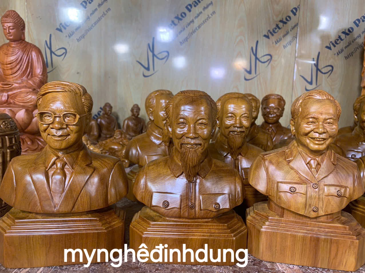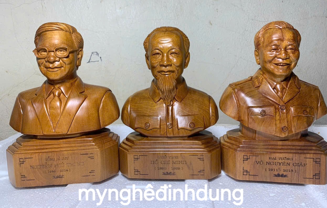_ Tượng chân dung 3 vĩ nhân làm lên lịch sử đất Việt ,1 Chủ tịch hồ Chí Minh , 2 đại tướng võ nguyên giáp , 3 tổng Bí thư nguyễn phú trọng được làm bằng chất liệu gỗ bách xanh thơm nức tự nhiên 100%