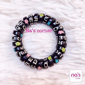 Cột tóc lò xo lớn màu đen hoạ tiết hoa chữ sang trọng thời trang