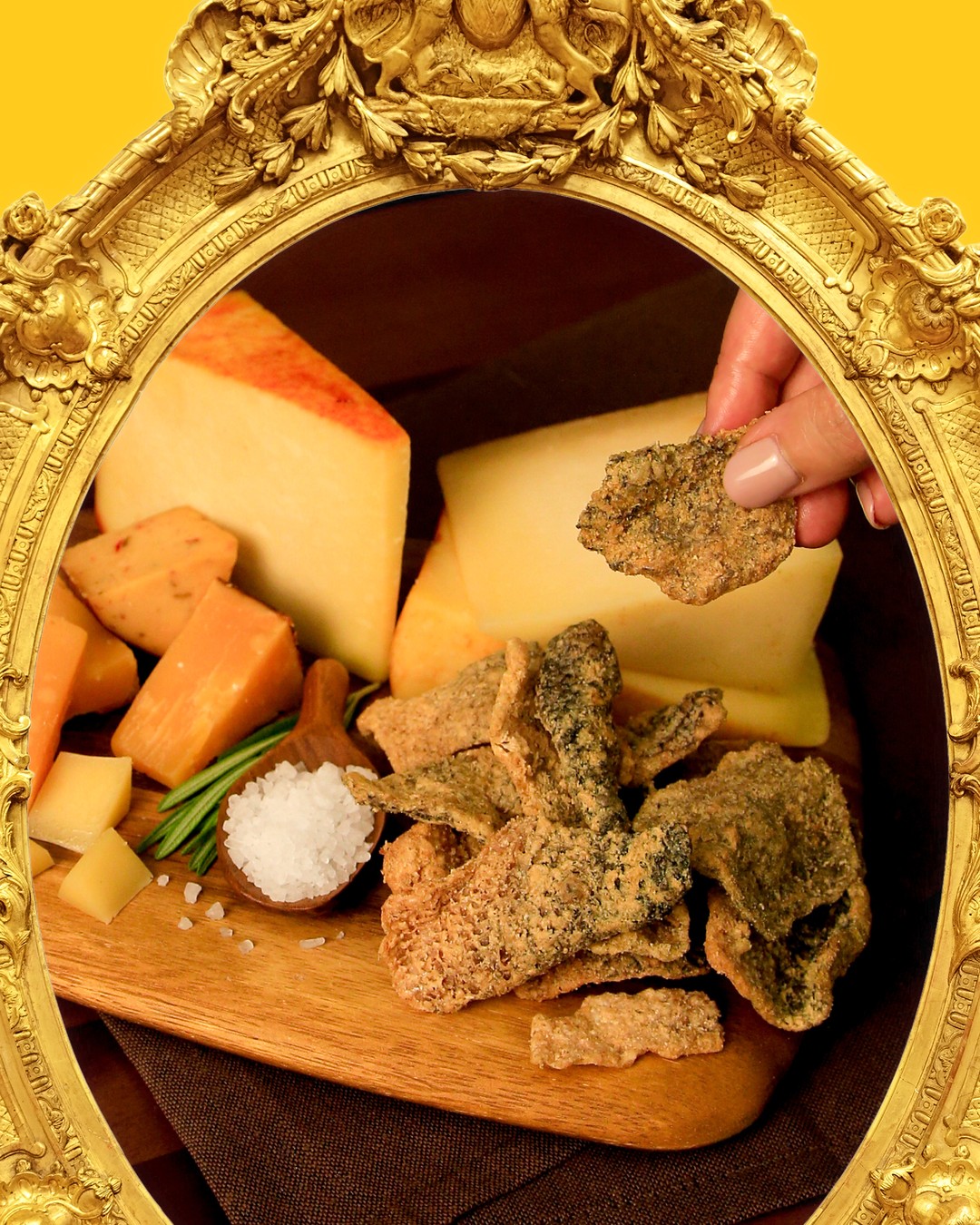 Da cá hồi Đại Tây Dương chiên giòn gây nghiện kết hợp hoàn hảo với pho-mát Cheddar hun khói mang lại hương vị snack pho-mát béo ngậy, đậm đà vừa lạ vừa quen khi thưởng thức.