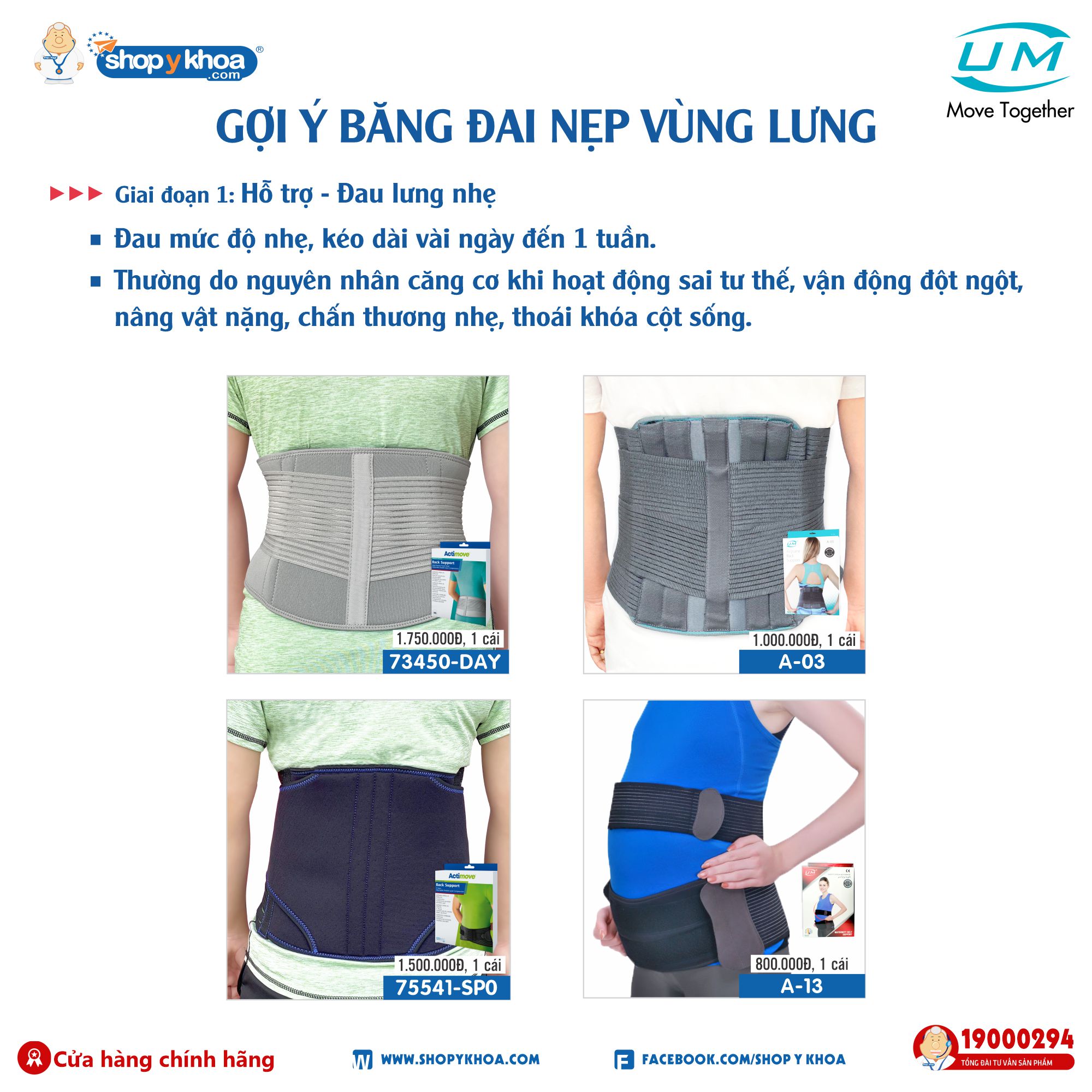 Đai hỗ trợ bầu UM (A13) là đai lưng có thiết kế đặc biệt hỗ trợ phần lưng thấp ở khung chậu và đau phần Sacro-Iliac ở phụ nữ mang thai. Đai hỗ trợ bầu UM có tác dụng nâng đỡ phần bụng và em bé trong bụng, giảm bớt gánh nặng trên thắt lưng cho người mẹ khi mang thai.