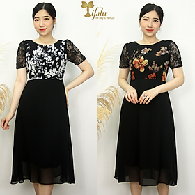 Đầm trung niên bigsize - Đầm xòe A voan hoa tay ren TIFALU900