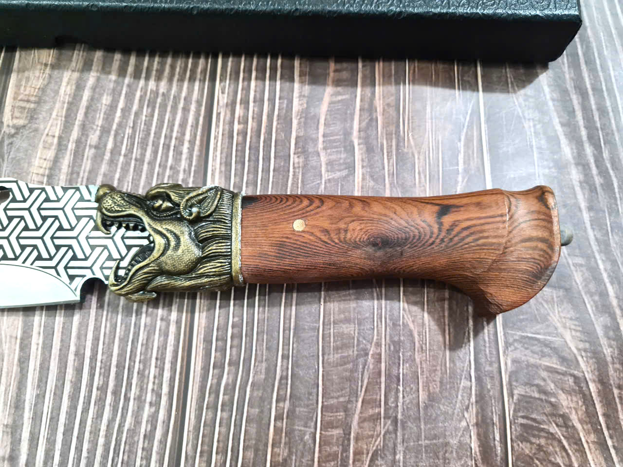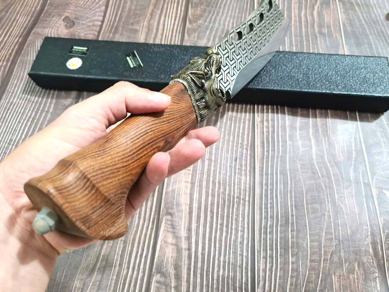 Chất liệu tay cầm: gỗ cẩm lai, phụ kiện khâu đầu hổ và chuôi bằng đồng