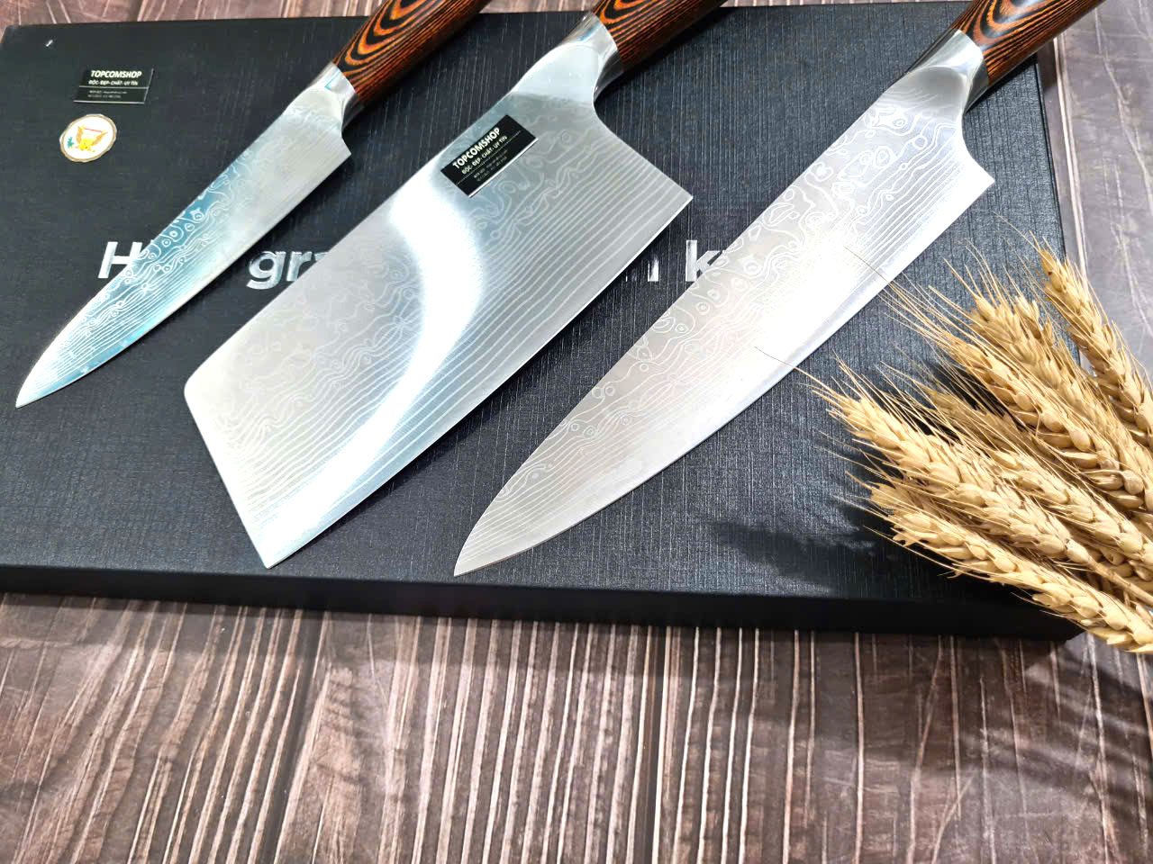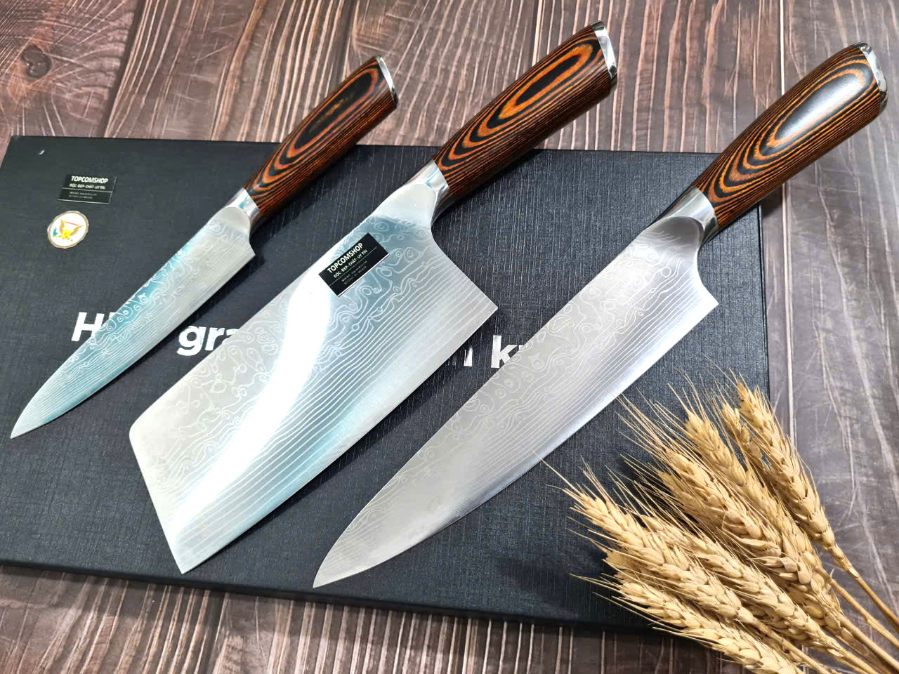 DAO - BỘ 3 DAO BẾP NHẬT BẢN THÉP DAMASCUS MÃ A8 DT2 nt topcomshop vn