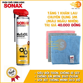 Chai xịt dầu bảo vệ chống rỉ sét và bảo quản MoS2Oil Sonax 339400 400ml - tặng 1 khăn 3M màu ngẫu nhiên - Vòi xịt thông minh 360 độ, chống ăn mòn, hòa tan rỉ, bôi trơn, không chứa silicone