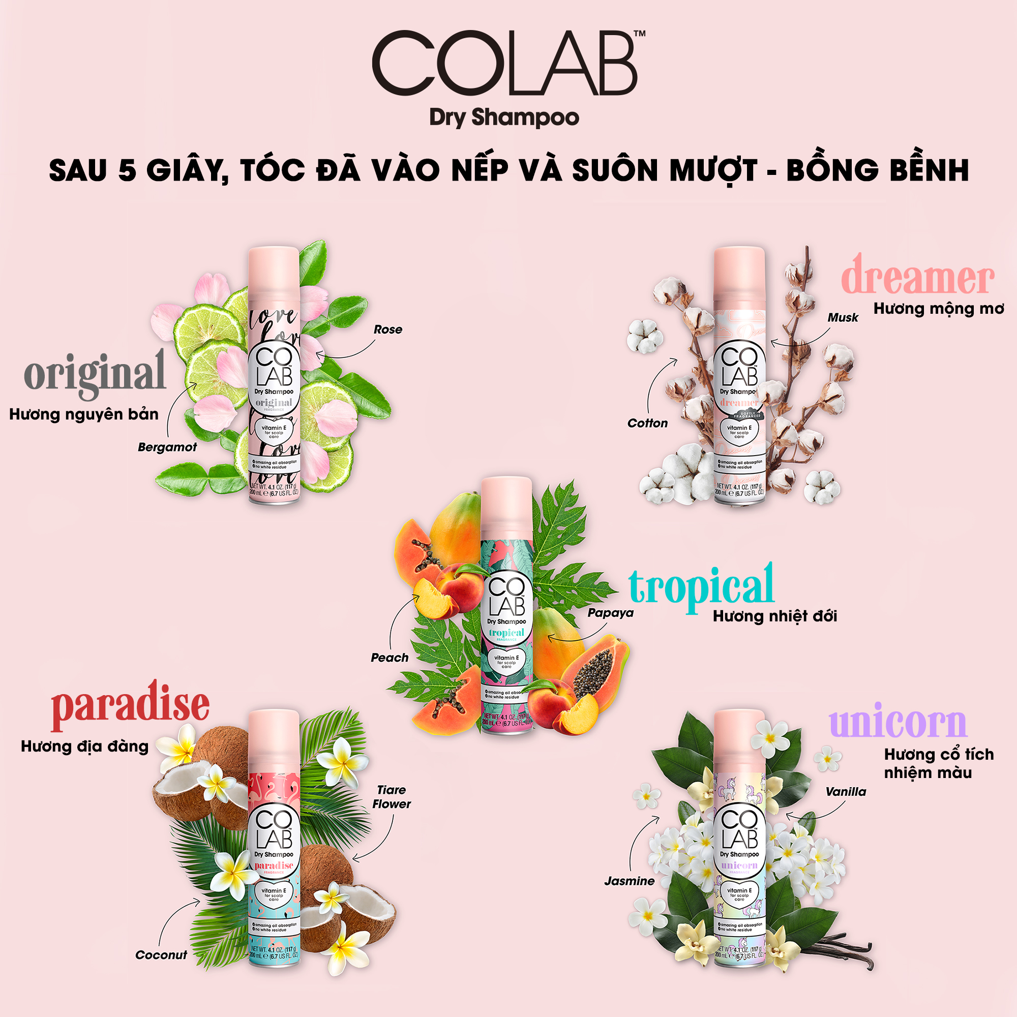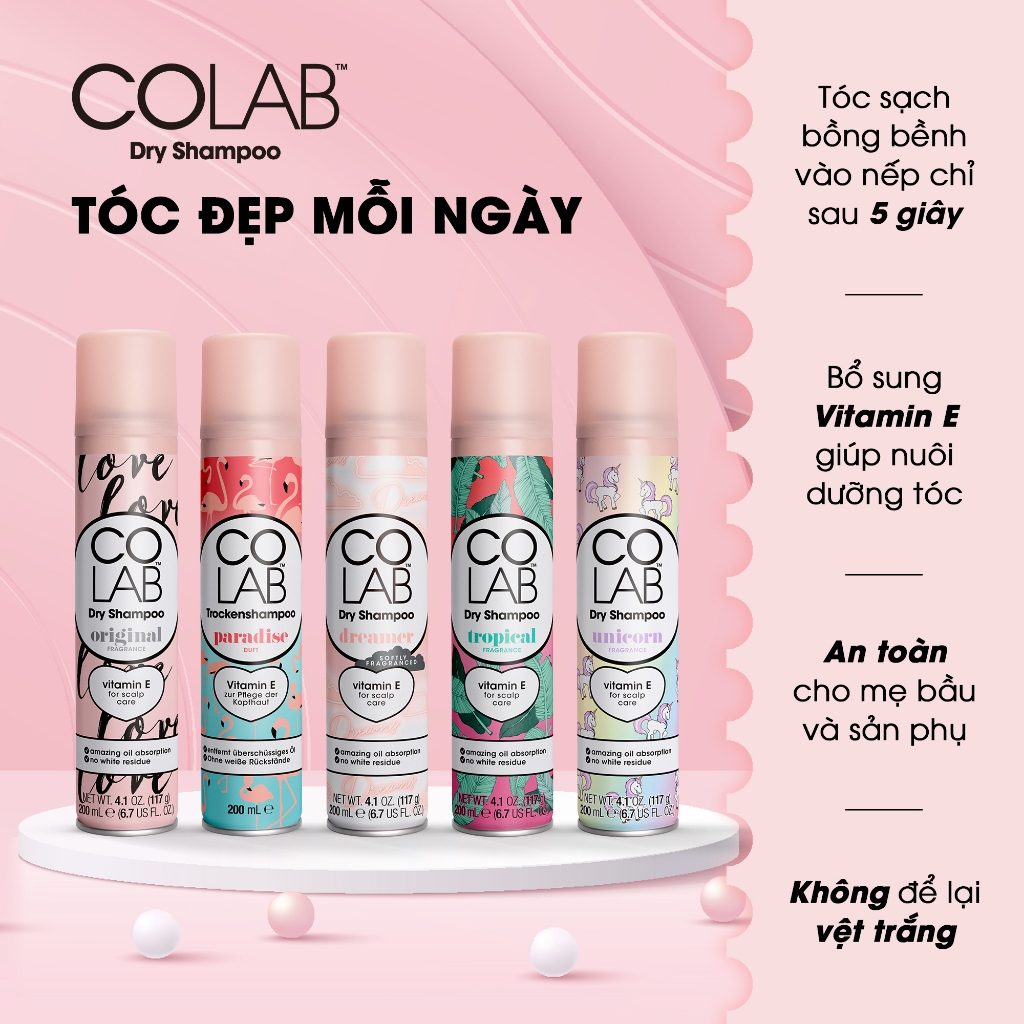 Dầu Gội Khô COLAB UK 200ml Dưỡng Tóc Sạch Bồng Bềnh Vào Nếp Sau 5 Giây
