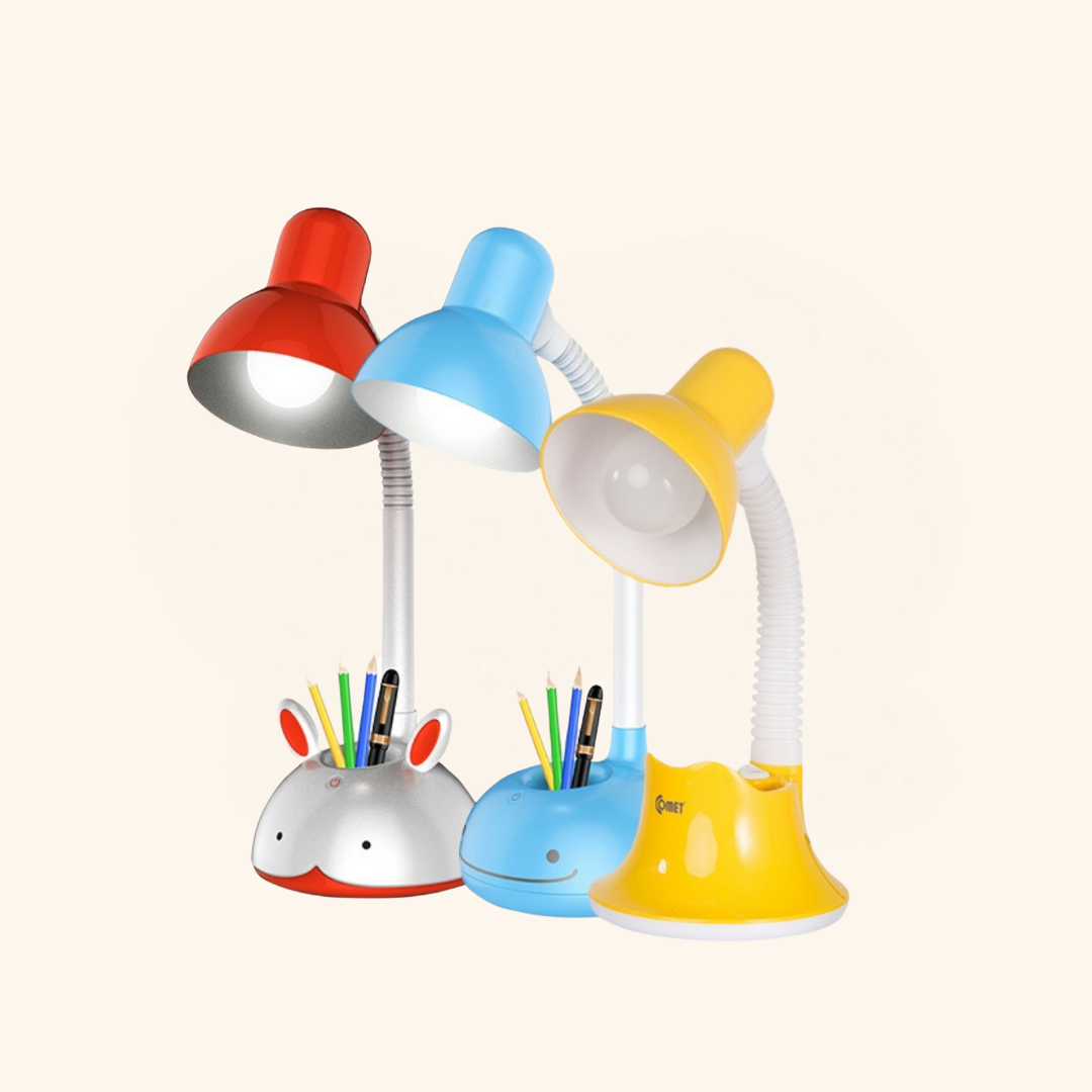 – Kiểu dáng tinh tế đẹp mắt với màu sắc nổi bật cùng thiết kế hộp đựng bút đa năng tiện lợi. Đèn bàn Comet CT413 sẽ mang đến sự sinh động và tươi mới cho không gian bàn học của bé cũng như không gian sống của gia đình bạn.