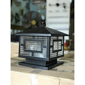 Đèn trụ cổng màu đen kính mờ không thấm nước sử dụng bóng led cao cấp D20cm
