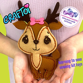 KIM NHỰA Bộ Thủ Công Trẻ Tự Làm Thú Bông 5+ DEER DAISY BOW Craftoi Felt Sewing toy prepunched holes plastic needle