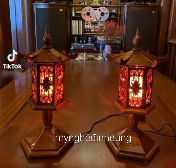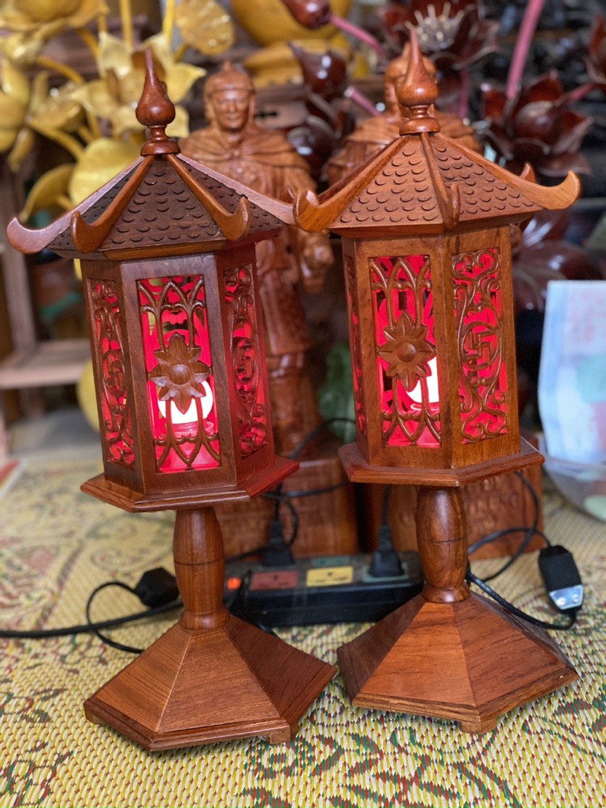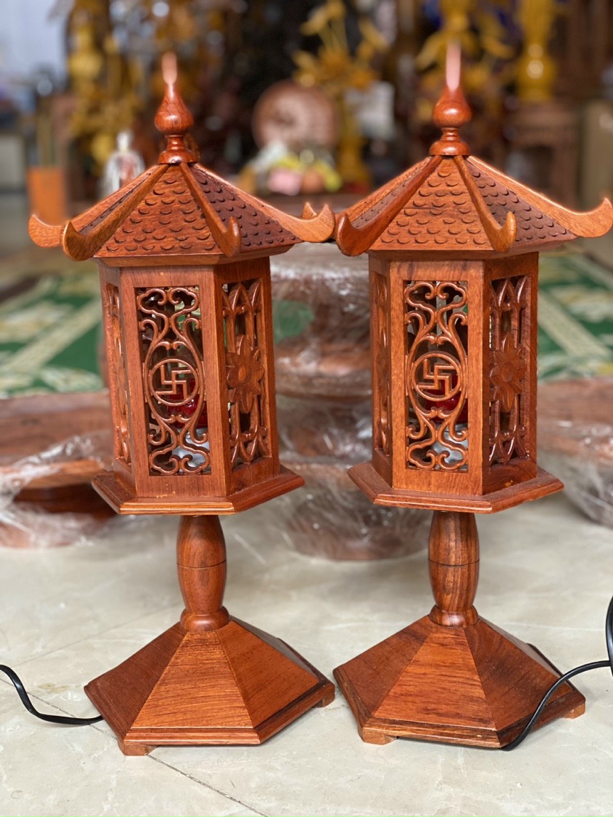_ Đôi đèn thờ được làm bằng chất liệu gỗ hương tự nhiên 100%