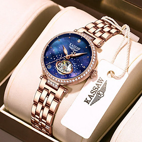 Đồng hồ nữ chính hãng KASSAW K188-1 ,Fullbox, Kính sapphire ,chống xước,chống nước,mặt xanh vỏ vàng hồng dây kim loại, thép không gỉ 316L, Mới 100%,Bảo hành 24 tháng,thiết kế lộ cơ đơn giản,trẻ trung và sang trọng