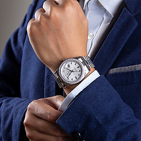 【START】đồng hồ cơ tự động nam Mặt số nạm kim cương chống nước chức năng hiển thị ngày đồng hồ kim loại