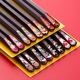 Combo 5 Đôi Đũa Thủy Tinh Đầu Đũa Vạt Xéo Trang Trí Họa Tiết Nhật Bản Phủ Bóng