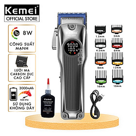 Tông đơ cắt tóc chuyên nghiệp Kemei KM-1766 lưỡi cắt mạ carbon DLC cao cấp có động cơ không chổi than màn hình LCD hiển thị công suất 5W - Chính hãng