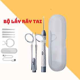 Bộ Lấy Ráy Tai, ngoáy tai có đèn kèm đầy đủ phụ kiện, Mới Nâng Cấp Nhẹ, An Toàn Không Đau, Thiết Kế Cho Em Bé Tặng kèm 4 đầu ngoáy tai