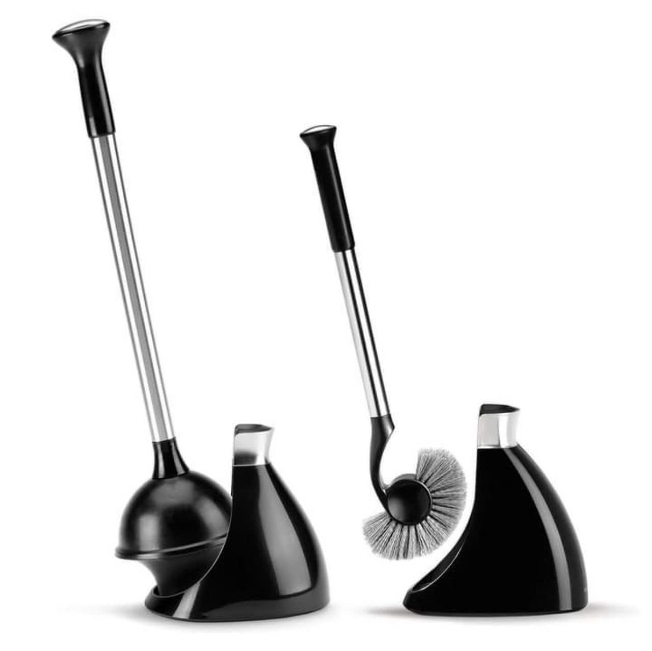 Dụng cụ thông tắc bồn cầu Simplehuman bao gồm 1 thanh pít tong và 1 giá đỡ chống nhỏ giọt