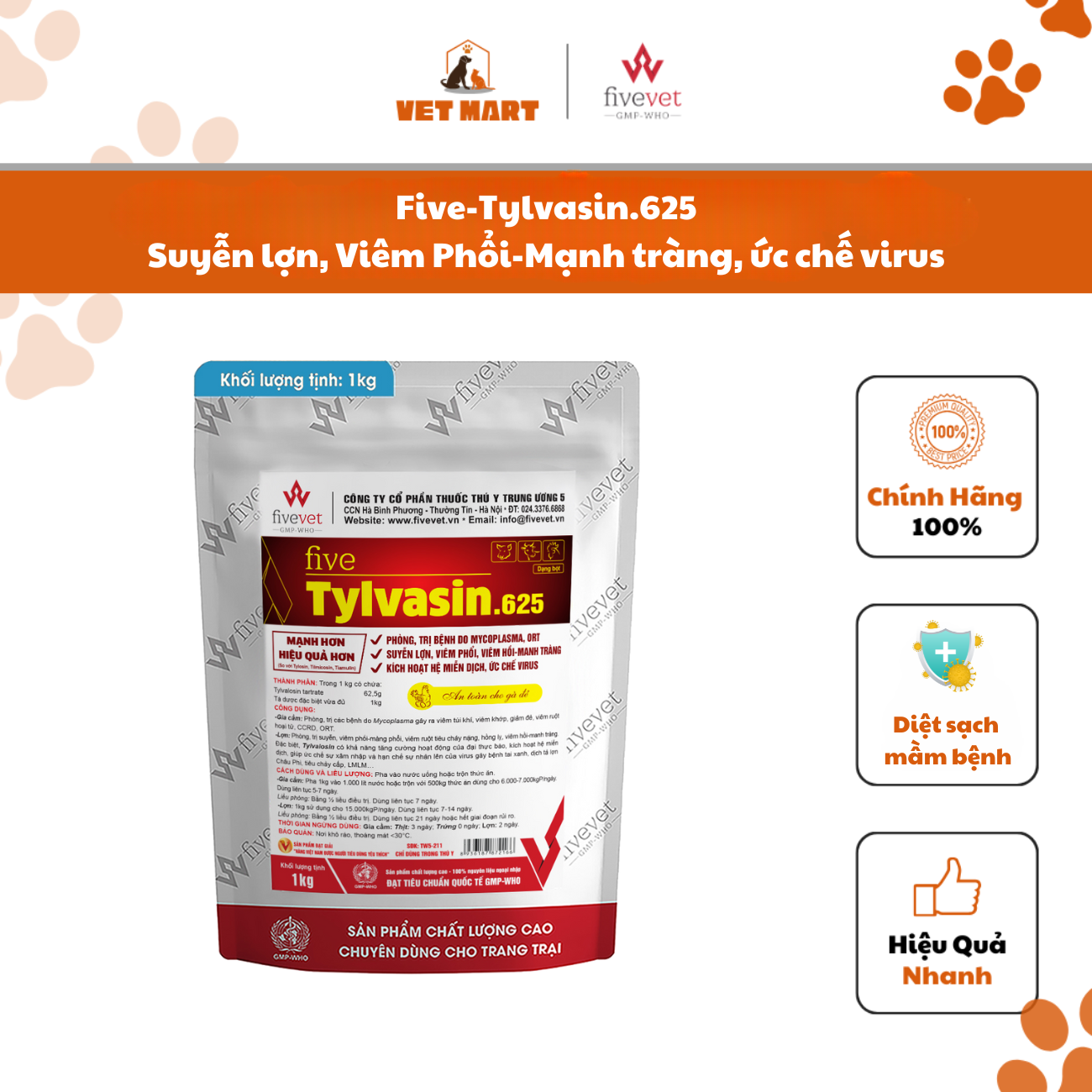 Five-Tylvasin.625 – Sự lựa chọn thông minh, hỗ trợ sức khỏe và nâng cao năng suất vật nuôi một cách tối ưu!