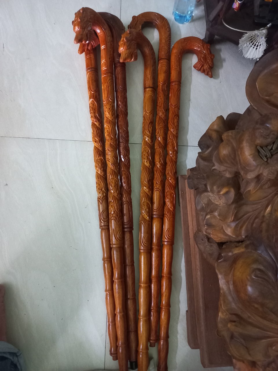 _ Gậy batong hỗ chợ đi lại dành cho người già được làm bằng chất liệu gỗ hương đá tự nhiên 100%