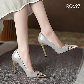 Giày nữ cao gót nhọn ROSATA RO697 -9p- Đen, Ghi - HÀNG VIỆT NAM - BKSTORE