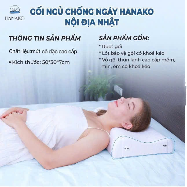 Gối ngủ chống ngáy HANAKO nội địa Nhật, chất liệu mút cô đặc cao cấp