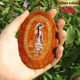 Gương gỗ trang điểm mini khảm xà cừ hình cô gái áo dài Việt Nam