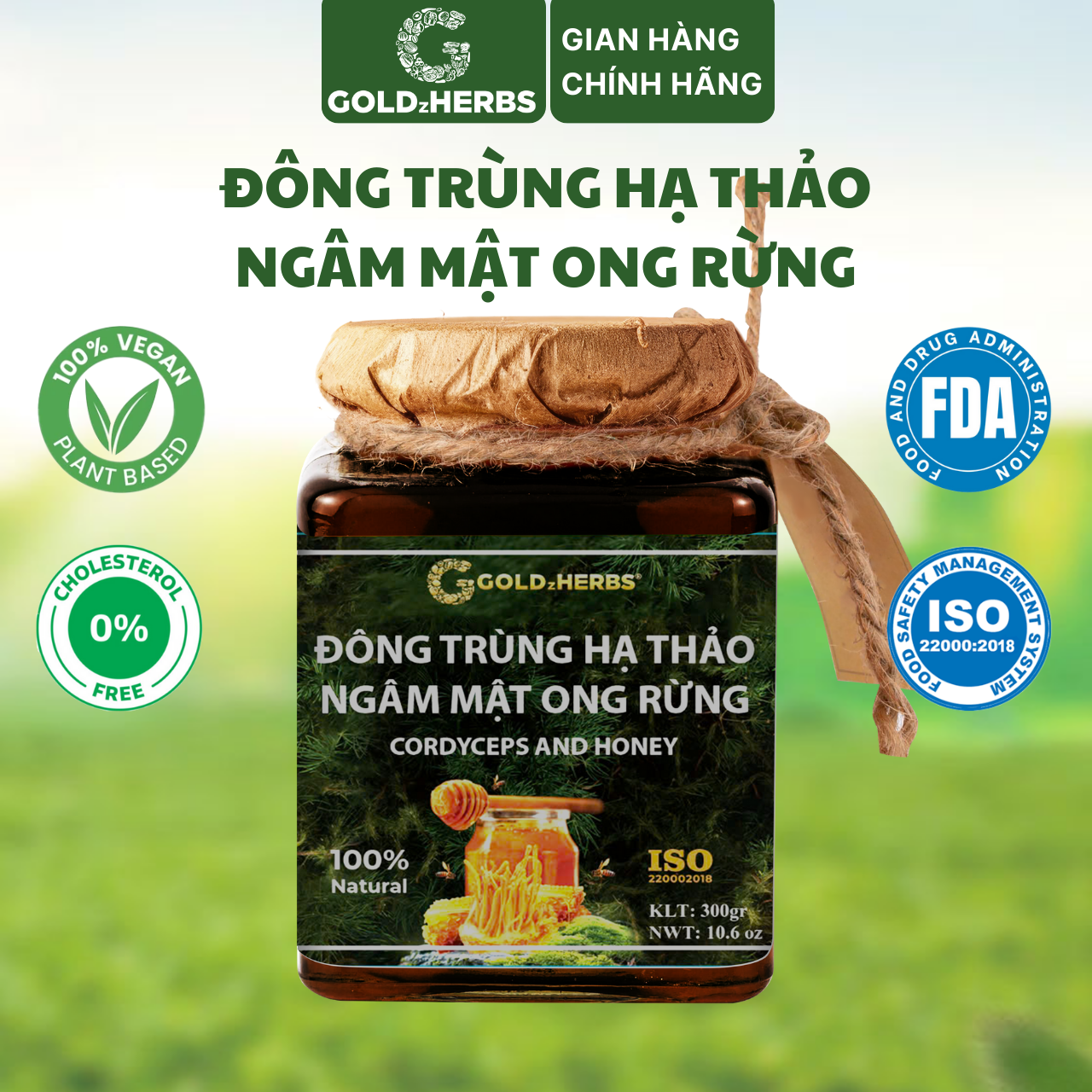Hàng chính hãng - Đông trùng hạ thảo ngâm mật ong rừng GoldzHerbs, 100% mật ong nguyên chất – Hũ 300g/ Hộp 15 gói