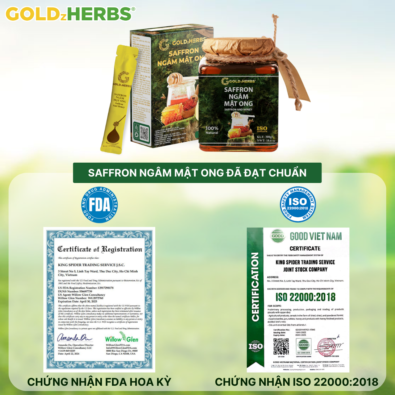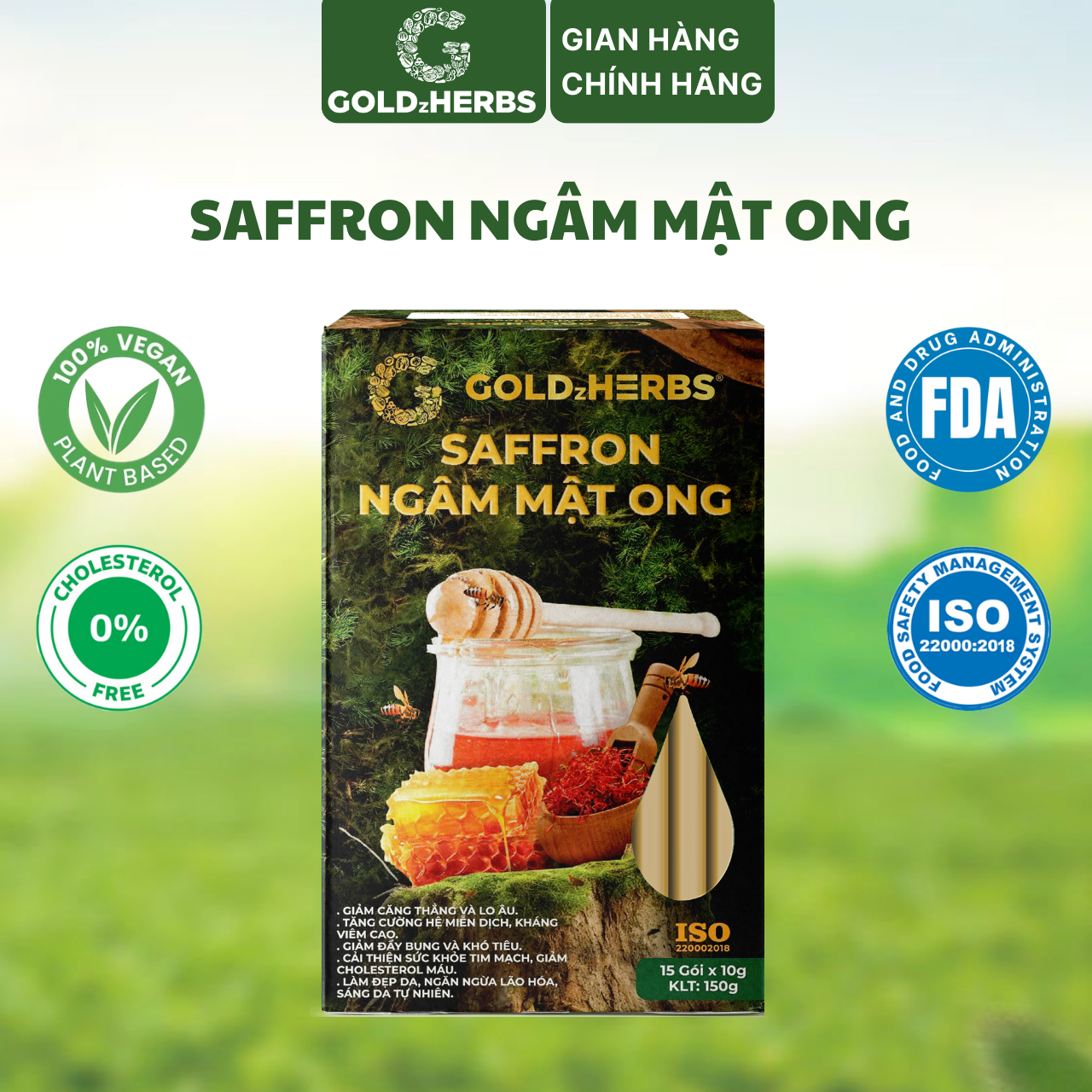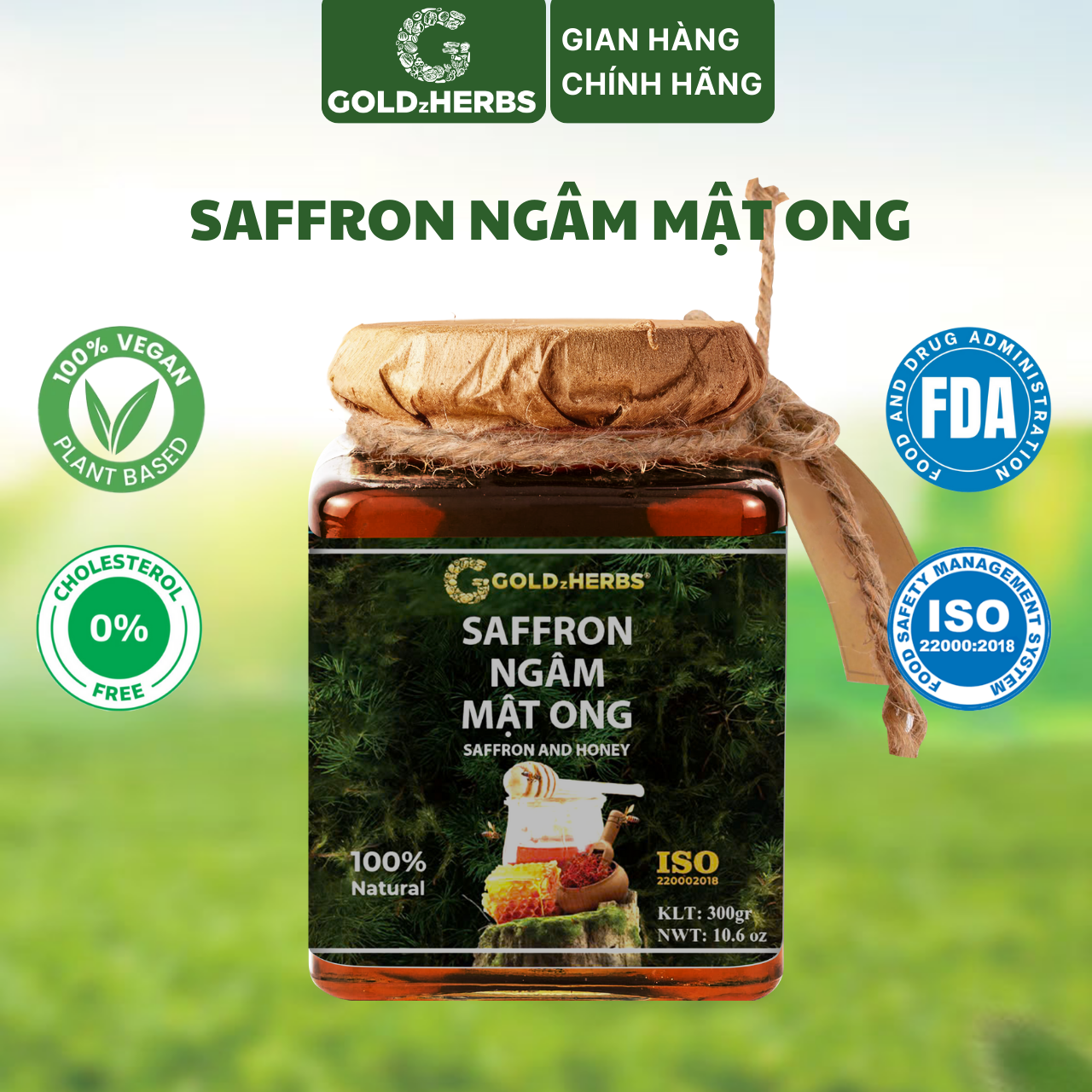 Hàng chính hãng - Saffron ngâm mật ong GoldzHerbs, 100% mật ong nguyên chất – Hũ 300g/ Hộp 15 gói x 10g
