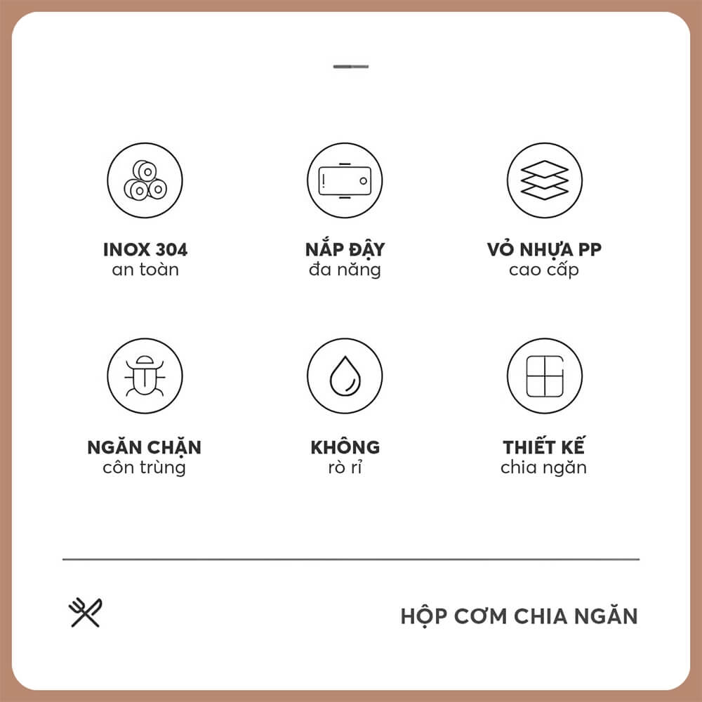 Hộp cơm được làm bằng chất liệu inox 304 cao cấp chịu được nhiệt độ cao và không dễ hư hỏng, siêu bền bỉ với khả năng chống ăn mòn, không dễ gỉ sét.