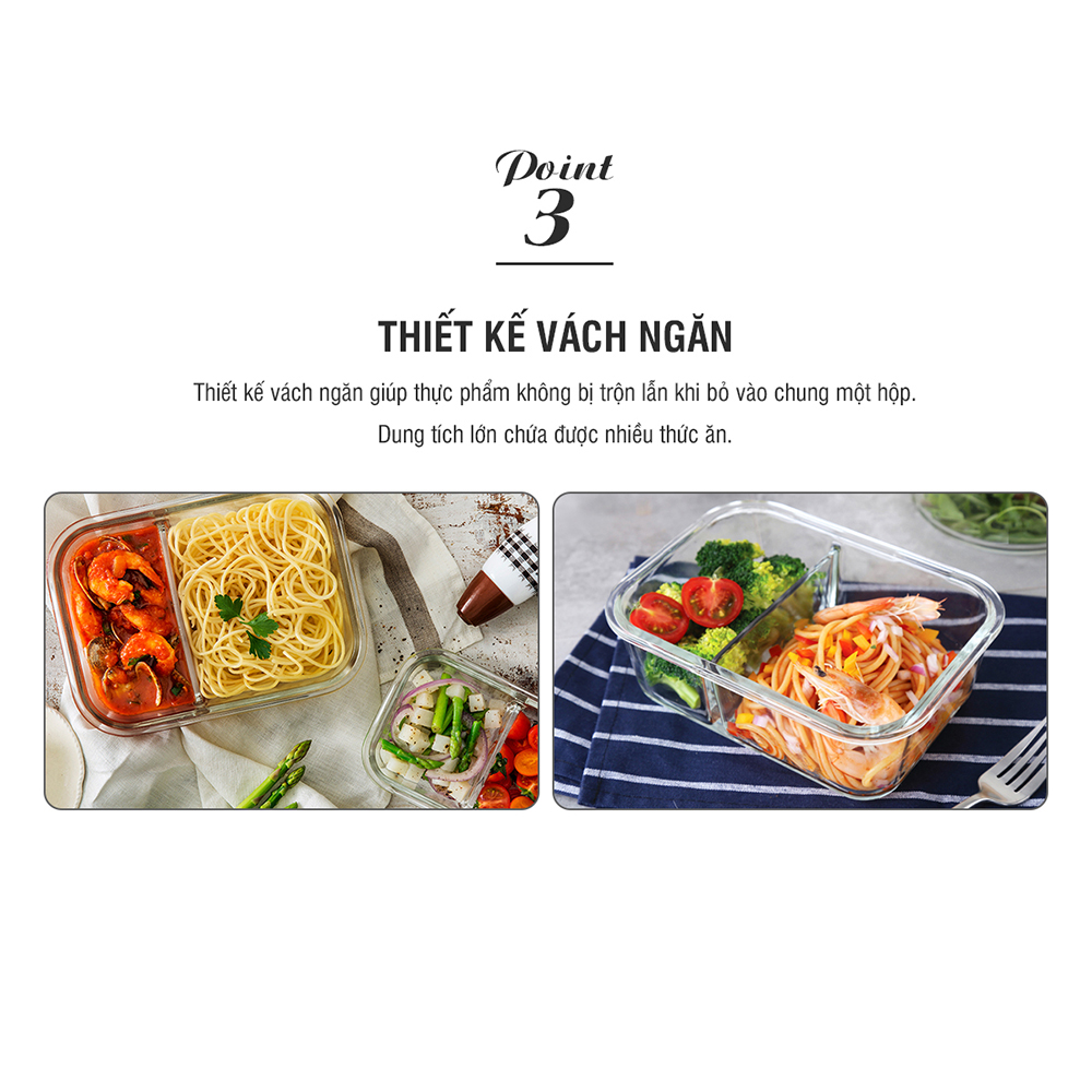 - Sản phẩm được thiết kế vách ngăn giúp thực phẩm không bị trộn lẫn khi bỏ vào chung một hộp.