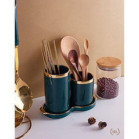 Hũ sứ đựng đũa có khay hứng nước đế liền | ỐNG ĐŨA 2 KẺ VÀNG KIM PHONG CÁCH RETRO 2022